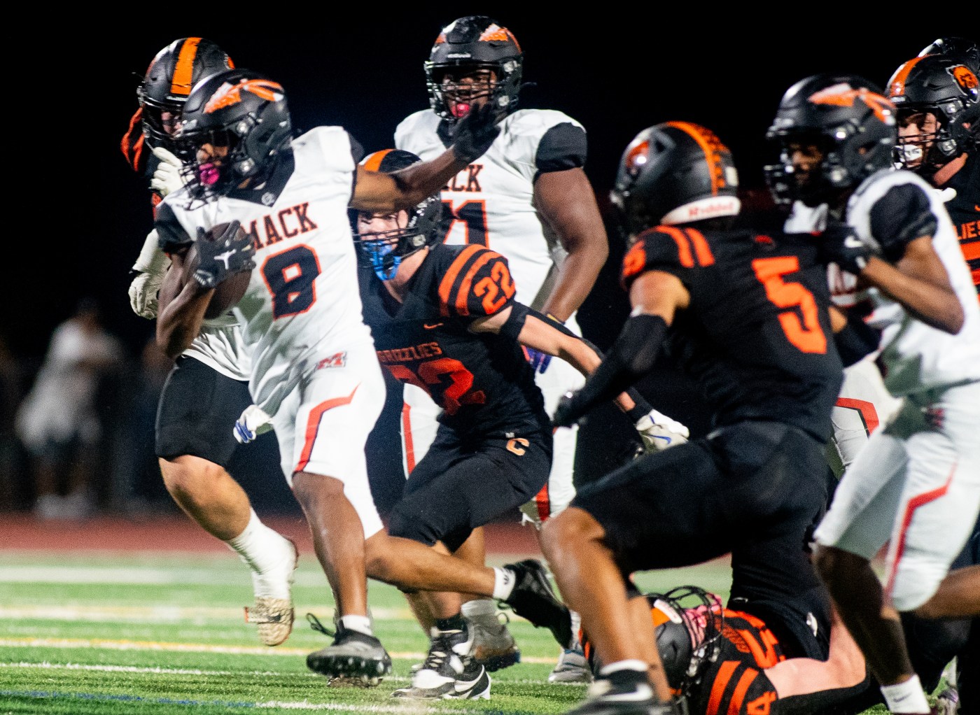 No. 10 Campolindo (5-0) at No. 16 Monte Vista (4-1), 7 p.m.: Two of the East Bay’s hottest teams meet in this nonleague matchup. Campolindo, led by wide receiver Everett Zellmer and running back Micah Parker, is averaging 37 points per game. Zellmer has 100 receiving yards or more in three of the team’s five games and leads the Moraga school in touchdowns with eight. Parker averages 86.8 rushing yards per game and has four touchdowns. Monte Vista’s only loss thus far was to Archbishop Riordan. Campolindo will no doubt aim to stop running back Henry Lasker, who has rushed for 541 yards and five touchdowns for Monte Vista. Quarterback Ian Ondricek has thrown for 16 TDs and Dakota Dickson has been a force as both an offensive and defensive lineman. HSRatings.com picks Monte Vista to win 34-31. – Nathan Canilao